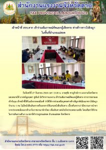 สรจ.ตาก ประสานทางสื่ออิเล็กทรอนิกส์และผ่านทางโทรศัพท์ ในการสำรวจเพื่อช่วยเหลือแรงงานกลุ่มเปราะบาง (ผู้ประกันตน มาตรา 33) ในพื้นที่อำเภอแม่สอด