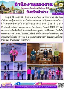 สรจ.ลำปาง ร่วมพิธีมอบรางวัลสถานประกอบกิจการที่มีระบบบริหารจัดการด้านแรงงานยอดเยี่ยม ปี 2564