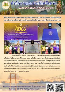 แรงงานจังหวัดตาก พร้อมด้วยหัวหน้าส่วนราชการสังกัดกระทรวงแรงงาน ร่วมกิจกรรมงานวันคล้ายวันสถาปนากระทรวงแรงงาน ประจำปี 2564