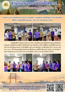 แรงงานจังหวัดสุพรรณบุรี ประกันสังคมจังหวัดสุพรรณบุรี พร้อมด้วยผู้แทนในสังกัดกระทรวงแรงงานจังหวัดสุพรรณบุรีสุพรรณบุรี มอบป้าย “จุดประสานงานบริการกระทรวงแรงงานประจำตำบล ……” ให้แก่อาสาสมัครแรงงานในพื้นที่อำเภอสามชุก อำเภอหนองหญ้าไซ อำเภอเดิมบางนางบวช