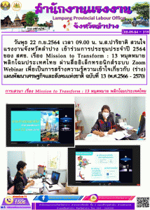 ร่วมการประชุมประจำปี 2564 ของ สศช. เรื่อง Mission to Transform : 13 หมุดหมาย พลิกโฉมประเทศไทย ผ่านสื่ออิเล็กทรอนิกส์ระบบ Zoom Webinar
