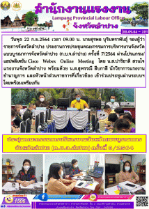 ร่วมประชุมคณะกรรมการบริหารงานจังหวัดแบบบูรณาการจังหวัดลำปาง (ก.บ.จ.ลำปาง) ครั้งที่ 7/2564 ผ่านโปรแกรม/แอปพลิเคชัน Cisco Webex Online Meeting