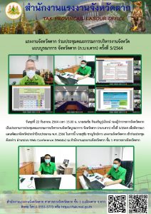 แรงงานจังหวัดตาก ร่วมประชุมคณะกรรมการบริหารงานจังหวัดแบบบูรณาการ จังหวัดตาก (ก.บ.จ.ตาก) ครั้งที่ 5/2564