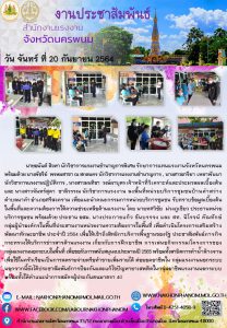 สรจ.นครพนม ลงพื้นที่หน่วยบริการชุมชนบ้านคำสว่าง ตำบลนาคำ อำเภอศรีสงคราม เพื่อแนะนำคณะกรรมการหน่วยบริการชุมชน รับทราบข้อมูลเบื้องต้นในพื้นที่และความต้องการให้ความช่วยเหลือด้านแรงงาน