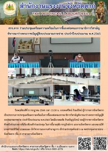 สำนักงานแรงงานจังหวัดพระนครศรีอยุธยา ร่วมประชุมคณะกรรมการโรคติดต่อจังหวัดพระนครศรีอยุธยา ครั้งที่ 21/2564