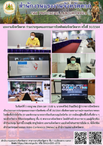แรงงานจังหวัดตาก ร่วมประชุมคณะกรรมการโรคติดต่อจังหวัดตาก ครั้งที่ 31/2564
