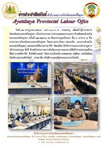สำนักงานแรงงานจังหวัดพระนครศรีอยุธยา ร่วมประชุมคณะกรรมการโรคติดต่อจังหวัดพระนครศรีอยุธยา ครั้งที่ 22/2564