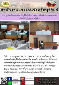 แรงงานพะเยา ร่วมประชุมคณะกรรมการโรคติดต่อจังหวัดพะเยา ครั้งที่ 27/2564 และศูนย์ปฎิบัติการควบคุมโรคจังหวัดพะเยา ครั้งที่ 16/2564