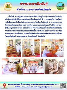 แรงงานจังหวัดตรังเข้าร่วมกิจกรรมเฉลิมพระเกียรติสมเด็จเจ้าฟ้าฯ กรมพระศรีสวางควัฒนวรขัตติยราชนารี เนื่องในโอกาสมหามงคลวันคล้ายวันประสูติ 4 กรกฎาคม 2564 กิจกรรมเทิดทูนสถาบันพระมหากษัตริย์ และพระบรมวงศานุวงศ์