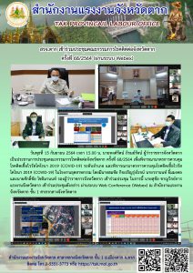 แรงงานจังหวัดตาก เข้าร่วมประชุมคณะกรรมการโรคติดต่อจังหวัดตาก ครั้งที่ 68/2564 (ผ่านระบบ Webex)