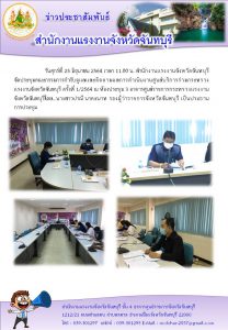 สำนักงานแรงงานจังหวัดจันทบุรีจัดประชุมคณะกรรมการกำกับดูแลและติดตามผลการดำเนินงานศูนย์ฯ