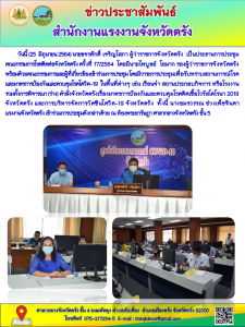 แรงงานจังหวัดตรังเข้าร่วมการประชุมคณะกรรมการโรคติดต่อจังหวัดตรัง ครั้งที่ 17/2564