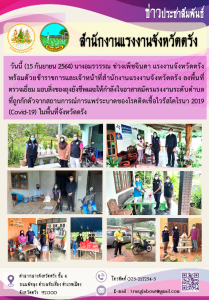 แรงงานจังหวัดตรังพร้อมด้วยข้าราชการและเจ้าหน้าที่สำนักงานแรงงานจังหวัดตรัง ลงพื้นที่ตรวจเยี่ยม มอบสิ่งของถุงยังชีพและให้กำลังใจอาสาสมัครแรงงานระดับตำบลที่ถูกกักตัว