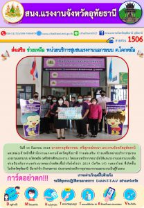 นางสาวอุทัยวรรณ ศรีสุภรณ์รจนา แรงงานจังหวัดอุทัยธานี ส่งเสริม ช่วยเหลือหน่วยบริการชุมชนแรงงานนอกระบบ