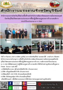 สำนักงานแรงงานจังหวัดบุรีรัมย์ ลงพื้นที่ร่วมกับสำนักงานพัฒนาสังคมและความมั่นคงของมนุษย์จังหวัดบุรีรัมย์ ติดตามสถานประกอบการที่ไม่ปฏิบัติตามกฎหมายการจ้างงานคนพิการ ประจำปีงบประมาณ พ. ศ. 2564