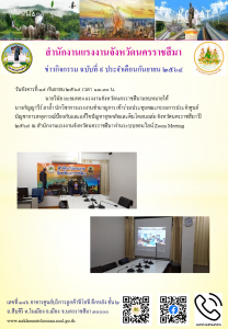 นายวินัย มะยมทอง แรงงานจังหวัดนครราชสีมามอบหมายให้ นางกัญญาวีร์ ลาล้ำ นักวิชาการแรงงานชำนาญการ เข้าร่วมประชุมคณะกรรมการประจำศูนย์บัญชาการเหตุการณ์ป้องกันและแก้ไขปัญหาอุทกภัยและดินโคลนถล่ม จังหวัดนครราชสีมา ปี ๒๕๖๔