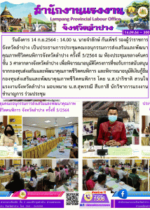 ประชุมคณะอนุกรรมการส่งเสริมและพัฒนาคุณภาพชีวิตคนพิการจังหวัดลำปาง ครั้งที่ 5/2564