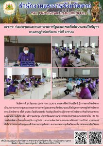 สำนักงานแรงงานจังหวัดนราธิวาส ร่วมประชุมคณะกรรมการบริหารงานจังหวัดแบบบูรณาการจังหวัดนราธิวาส (ก.บ.จ.นราธิวาส) ครั้งที่ 2/2564