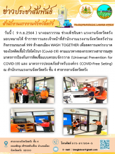 แรงงานจังหวัดตรังร่วมกิจกรรมรณรงค์ 999 ล้างยกเมือง WASH TOGETHER เพื่อลดการแพร่ระบาดของโรคติดเชื้อไวรัสโคโรนา (Covid-19)