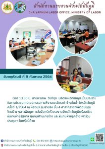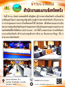 แรงงานจังหวัดตรัง ร่วมประชุมคณะกรรมการโรคติดต่อครั้งที่ 28/2564 เพื่อติดตามและประเมินสถานการณ์ของจังหวัดตรังและกำหนดมาตรการป้องกันและควบคุมการแพร่ระบาดของโรคติดเชื้อไวรัสโคโรนา 2019 (Covid–19)