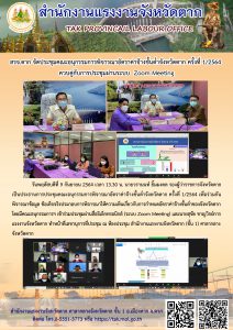 สรจ.ตาก จัดประชุมคณะอนุกรรมการพิจารณาอัตราค่าจ้างขั้นต่ำจังหวัดตาก ครั้งที่ 1/2564 ควบคู่กับการประชุมผ่านระบบ Zoom Meeting