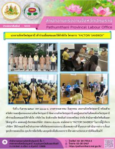 แรงงานจังหวัดปทุมธานี เข้าร่วมเยี่ยมชมและให้กำลังใจ โครงการ “Factory Sandbox” วันที่ 6 กันยายน 2564