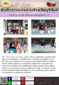 สำนักงานแรงงานจังหวัดบุรีรัมย์ ร่วมกิจกรรม “ร่วมกัน ปันอิ่ม มอบรอยยิ้ม สู้ภัยโควิด -19”