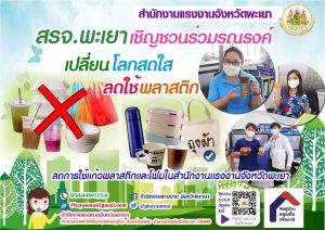 สรจ.พะเยา เชิญชวนร่วมรณรงค์ ลดการใช้แก้วพลาสติกและโฟมในสำนักงานแรงงานจังหวัดพะเยา