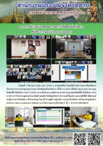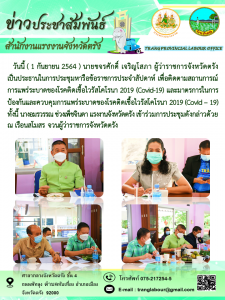 แรงงานจังหวัดตรังร่วมประชุมหารือข้อราชการประจำสัปดาห์ เพื่อติดตามสถานการณ์ การแพร่ระบาดของโรคติดเชื้อไวรัสโคโรนา 2019 (Covid-19) และมาตรการในการป้องกันและควบคุมการแพร่ระบาดของโรคติดเชื้อไวรัสโคโรนา 2019 (Covid – 19)