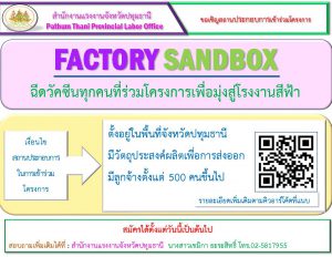 สำนักงานแรงงานจังหวัดปทุมธานี ขอเชิญชวนสถานประกอบการเข้าร่วมโครงการ “Factory Sandbox” สมัครได้ตั้งแต่วันนี้เป็นต้นไป