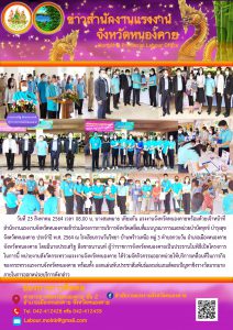 แรงงานจังหวัดหนองคายพร้อมด้วยเจ้าหน้าที่สำนักงานแรงงานจังหวัดหนองคายเข้าร่วมโครงการการบริการจังหวัดเคลื่อนที่แบบบูรณาการและหน่วยบำบัดทุกข์ บำรุงสุข จังหวัดหนองคาย ประจำปี พ.ศ. 2564