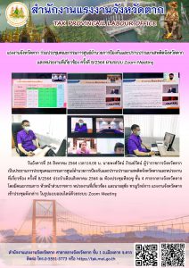 แรงงานจังหวัดตาก ร่วมประชุมคณะกรรมการศูนย์อำนวยการป้องกันและปราบปรามยาเสพติดจังหวัดตาก และหน่วยงานที่เกี่ยวข้อง ครั้งที่ 8/2564 ผ่านระบบ Zoom Meeting