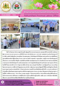 สำนักงานแรงงานจังหวัดปทุมธานี ลงพื้นที่ดำเนินโครงการ “Factory Sandbox” จังหวัดปทุมธานี