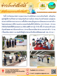 แรงงานจังหวัดตรัง ลงพื้นที่ตรวจสอบข้อมูลแรงงานไทยและแรงงานต่างด้าวในสถานประกอบการที่มีการแพร่ระบาดของโรคติดเชื้อไวรัสโคโรนา 2019 ( Covid-19 ) ตามคำสั่งจังหวัดตรัง ณ บริษัท เอสดีที พาราวู้ด จำกัด