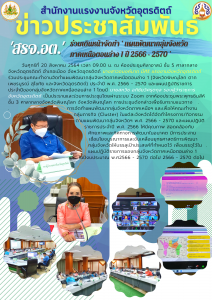 แรงงานจังหวัดสุโขทัย มอบหมายข้าราชการและเจ้าหน้าที่ ให้คำปรึกษาแนะนำและรับคำร้องเพื่อติดตามสิทธิประโยชน์แก่คนงานไทยที่เคยเดินทางไปทำงานต่างประเทศ รวมทั้งรณรงค์สุโขทัย รวมใจสู้ภัยโควิด-19