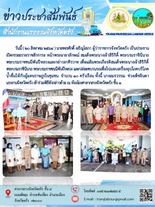 แรงงานจังหวัดตรังร่วมโครงการน้ำพระทัยพระราชทานส่วนภูมิภาค สมาคมสภาสังคมสงเคราะห์ฯ 76 จังหวัด ประจำปี 2564 เพื่อเฉลิมพระเกียรติสมเด็จพระนางเจ้าสิริกิติ์ พระบรมราชินีนาถ พระบรมราชชนนีพันปีหลวง