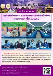 แรงงานจังหวัดสกลนคร ร่วมการประชุมคณะกรรมการโรคติดต่อ จังหวัดสกลนคร ครั้งที่ ๔๓/๒๕๖๔