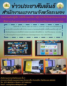แรงงานจังหวัดหนองคาย เข้าร่วมประชุมตามโครงการเพิ่มประสิทธิภาพกระบวนการนำเข้าและอนุญาตทำงานของคนต่างด้าวแบบถูกกฎหาย การป้องกันและแก้ไขปัญหาการค้ามนุษย์เพื่อยกระดับสถานการณ์ด้านการค้ามนุษย์ของประเทศไทย สรุปผลการปฏิบัติงานของภาคีเครือข่าย ประจำปีงบประมาณ 2564