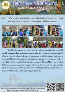 สรจ.ตาก ร่วมกับ อสร.ตำบลระแหง ตำบลหนองบัวเหนือ และ ตำบลหนองบัวใต้ ลงพื้นที่เชิงรุกตามแนวทางการช่วยเหลือแรงงานกลุ่มเปราะบางกระทรวงแรงงาน จังหวัดตาก ในพื้นที่อำเภอเมืองตาก