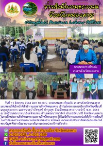 แรงงานจังหวัดหนองคาย เข้าร่วมกิจกรรมเลี้ยงอาหารกลางวัน โครงการน้ำพระทัยราชทานส่วนภูมิภาคสมาคมสภาสังคมสงเคราะห์ 76 จังหวัด ประจำปี2564