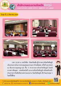 สำนักงานแรงงานจังหวัดชัยภูมิ เข้าร่วมการประชุมคณะกรรมการโรคติดต่อจังหวัดชัยภูมิ ครั้งที่ 66/2564