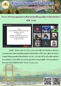 สรจ.ตาก เข้าร่วมประชุมคณะทำงานจัดทำและขับเคลื่อนแผนพัฒนากำลังคนจังหวัดตาก ครั้งที่ 1/2564