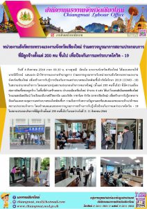 หน่วยงานสังกัดกระทรวงแรงงานจังหวัดเชียงใหม่ ร่วมตรวจบูรณาการสถานประกอบการที่มีลูกจ้างตั้งแต่ 200 คน ขึ้นไป เพื่อป้องกันการแพร่ระบาดโควิด-19