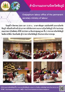การประชุมคณะกรรมการโรคติดต่อจังหวัดชัยภูมิ ครั้งที่ 62/2564 ประจำวันพุธที่ 4 สิงหาคม 2564