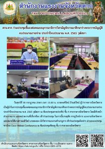 แรงงานจังหวัดหนองคาย ร่วมประชุมชี้แจงงบประมาณรายจ่ายประจำปีงบประมาณ พ.ศ.2565 ต่อคณะอนุกรรมาธิการวิสามัญพิจารณาศึกษาร่างพระราชบัญญัติงบประมาณรายจ่ายประจำปีงบประมาณ พ.ศ.2565 วุฒิสภา ผ่านทางออนไลน์