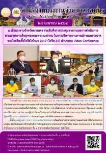 กระทรวงแรงงานจังหวัดมุกดาหาร ร่วมประชุมการบริหารสถานการณ์การแพร่ระบาดของโรคติดเชื่อไวรัสโคโรนา 2019 ผ่านระบบ Video Conference