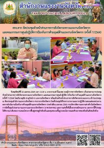 สรจ.ตาก จัดประชุมหัวหน้าส่วนราชการสังกัดกระทรวงแรงงานจังหวัดตาก และคณะกรรมการศูนย์ปฏิบัติการป้องกันการค้ามนุษย์ด้านแรงงานจังหวัดตาก (ครั้งที่ 7/2564)