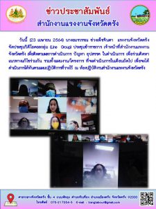 แรงงานจังหวัดตรังจัดประชุมวิดีโอคอลกลุ่ม (Line Group) ประชุมข้าราชการ เจ้าหน้าที่สำนักงานแรงงานจังหวัดตรัง เพื่อติดตามผลการดำเนินงานในเดือนเมษายน 2564 และแผนงานที่ดำเนินการในเดือนถัดไป