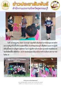แรงงานจังหวัดสุพรรณบุรี เป็นประธานการประชุมอาสาสมัครแรงงานสัญจรในพื้นที่อำเภอสองพี่น้อง จังหวัดสุพรรณบุรี