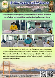 สรจ.ตาก จัดประชุมหัวหน้าส่วนราชการสังกัดกระทรวงแรงงานจังหวัดตาก และคณะกรรมการศูนย์ปฏิบัติการป้องกันการค้ามนุษย์ด้านแรงงานจังหวัดตาก (ครั้งที่ 7/2564)